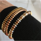 The new metallic disco collection makes a great gift or a treat for yourself. Choose from Rose, Gold, Silver or a mix of all three. Stacked together the bracelets create a statement on your wrist.