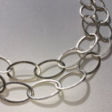 Do you love compliments? Then you must have this chain necklace. With an open brushed oval link and finished with a hook clasp this contemporary necklace can be worn long or wrap twice for a short necklace. This is the perfect chain to wear anywhere.