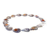 Teardrop grey agate shapes are filled with brazil carnelian and matt quartz. Finished with a interlocking C-clasp that is a feature of the necklace. Can be worn with the clasp to the back, asymmetrically or to the front.