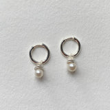 Mini Pearl Hoops - Silver