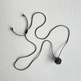 Simple, striking, and beautifully versatile - this pendant features a handcrafted lace ball made from polished hematite, suspended on a fine black cord with an adjustable sliding knot. Its lightweight design and adjustable length make it perfect for layering or wearing alone, either as a choker or long pendant. The deep metallic shine of hematite adds a modern, grounded touch to any look.
