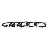 The morse code message 'I am a strong woman' is hidden in this set of five graphic matt onyx and pearl bracelets. Feel empowered while wearing these bracelets. Onyx is a grounding stone that is said to bring strength and stability something we all seek in this unpredictable world.