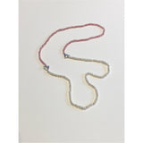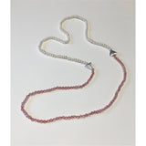 The coral colour of this faceted Strawberry Quartz sparkle when they catch the light. Handcrafted with Silver arrow features, Freshwater Pearl and Strawberry Quartz. This half and half necklace can be worn either with the Pearls or Strawberry Quartz as the feature maybe dear to be different and wear it asymmetrically.