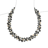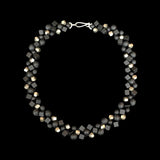 Striking in its simplicity, this necklace brings together contrast and harmony in perfect balance. One half features pyrite; the other, bold matte black onyx cubes - creating a sculptural piece with modern rhythm. A single sterling silver accent connects the two halves, offering a subtle focal point and sense of unity. Wear it to add elegance with an edge, whether styled with a crisp shirt or an evening look.